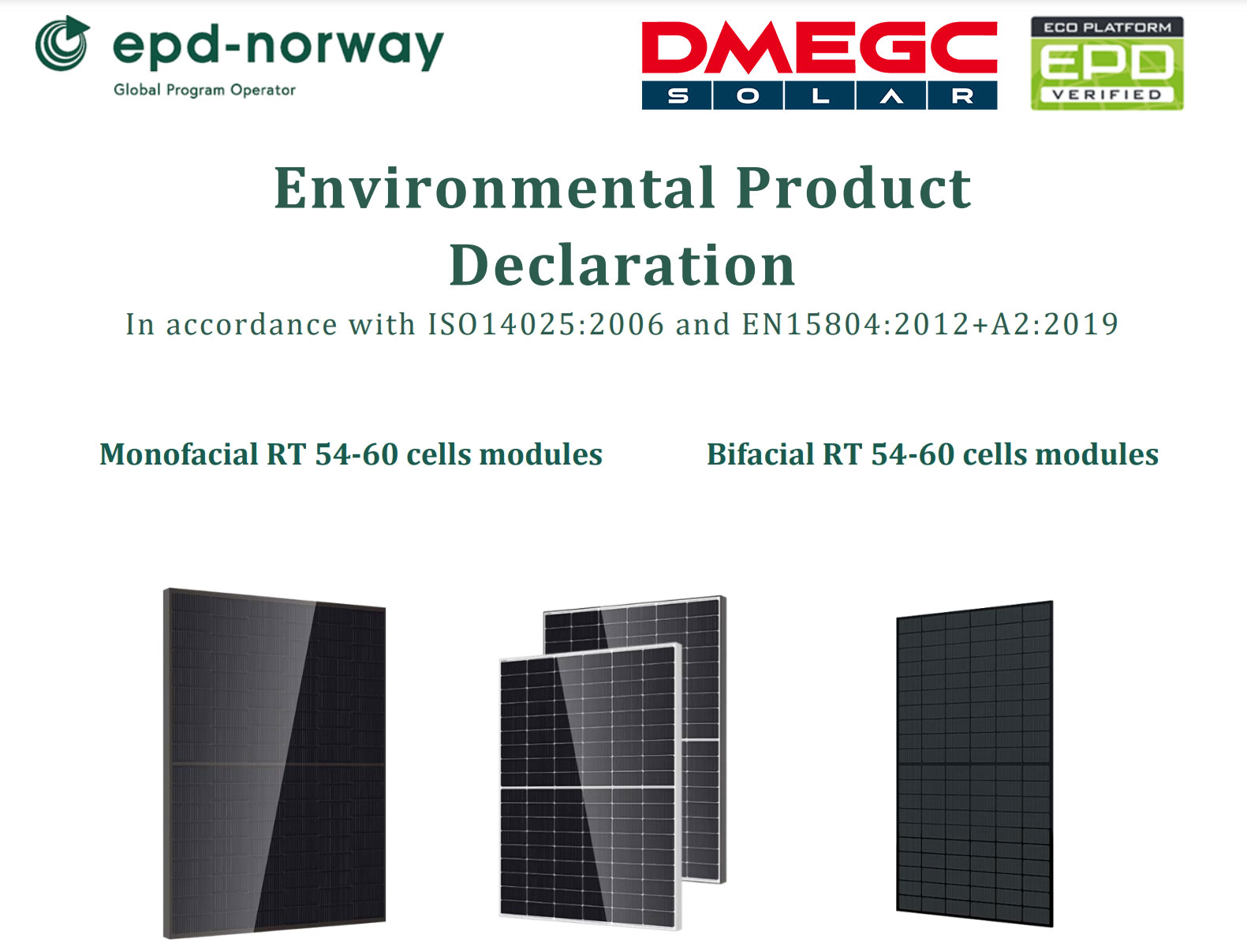 EPD-Norge is part of the global EPD system. It is based on the life cycle assessment (LCA) and has specially formulated PCR (product category rules) for PV products. It not only focuses on the environmental impact of the modules themselves, but also extends to the assessment of upstream materials such as cells, silicon wafers, silicon ingots and silicon materials. DMEGC Solar has worked closely with Kapstan, an internationally renowned environmental assessment agency, to analyze in detail the environmental impact of the Infinity RT modules throughout their life cycle from raw material procurement, production, transportation, installation to waste disposal, as well as the product's advantages in energy saving and emission reduction.